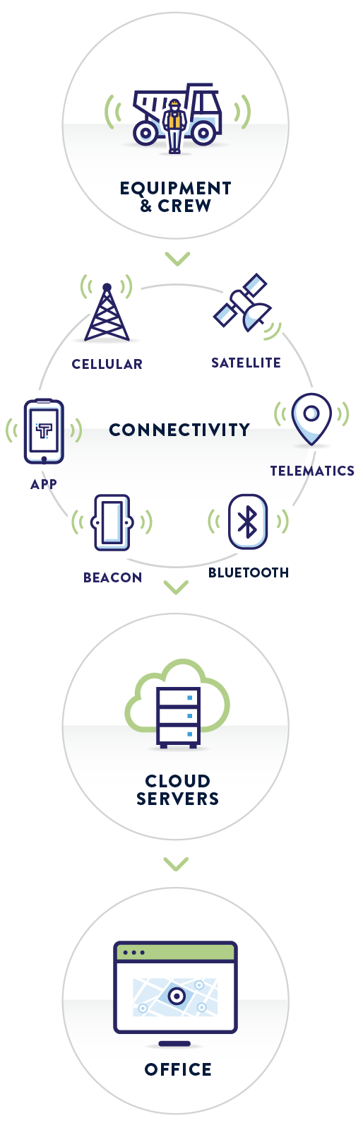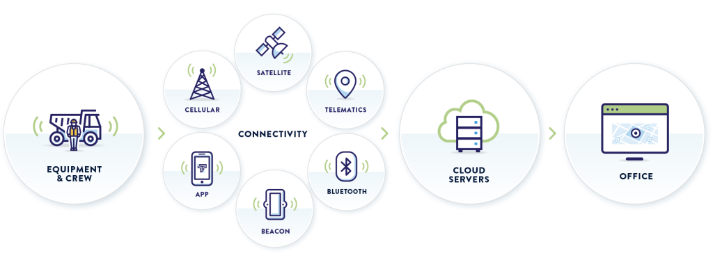 Our platform utilizes multiple forms of connectivity to facilitate real-time data exchange between equipment, crew, assets and the office that manage the projects. This ensures efficient tracking, monitoring, and coordination of resources throughout a project’s schedule.