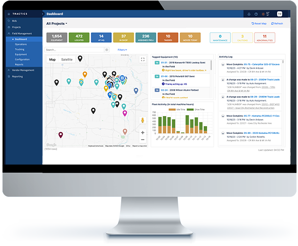 Tractics fleet management seamlessly integrates with the rest of the Tractics’ platform enabling you to streamline operations and enhance coordination between field and office staff. Real-time equipment data exchange and communications ensure that everyone is connected, making informed decisions and ensuring smooth workflows.